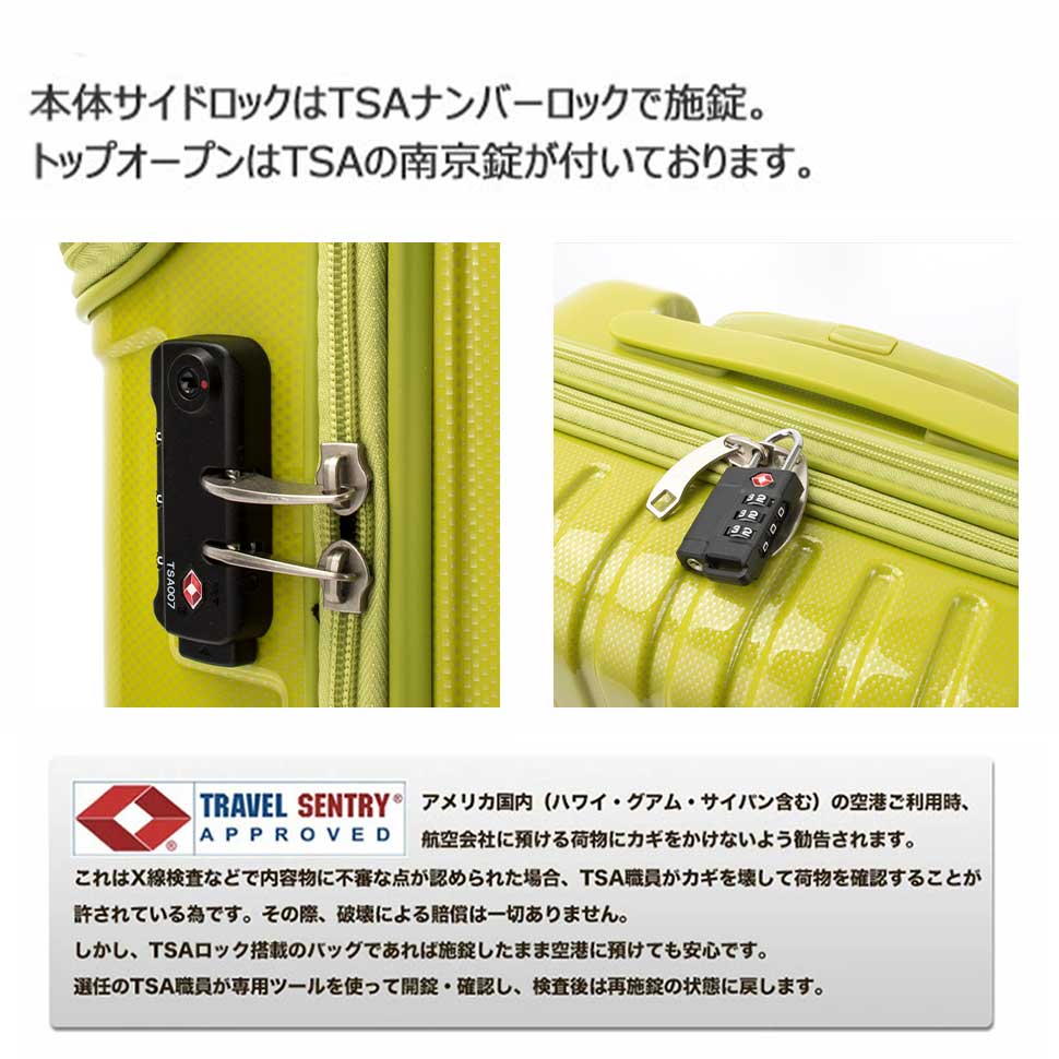 どちらもTSAロックを採用しておりますのでアメリカ(グアム・ハワイ等を含む)の空港でも両方の鍵を掛けたままスーツケースを預けることができます。
